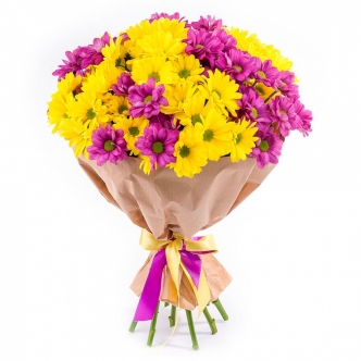 Объемный букет из роз и хризантем